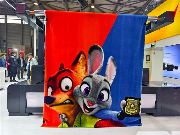 连续参加多届展会的奇正智能,今年携自主研发的在线上浆数码印花机亮相,为毛绒印花提供了全新解决方案。“我们这款数码印花机最大的不同之处在于使用了湿打印花技术,利用渗透印花原理,将颜料直接喷染进织物纤维中,既能以较少的墨水耗量实现更高的色光饱和度,还能省去上浆工序,增加厂房可用空间。”现场工作人员向新民晚报记者介绍,该在线上浆系统可通过数字化形式设定参数,智能侦测并调节印花流程,操作简易、省时省力,同时兼顾印花质量,能呈现出鲜艳、细致且富有质感的印花成品。